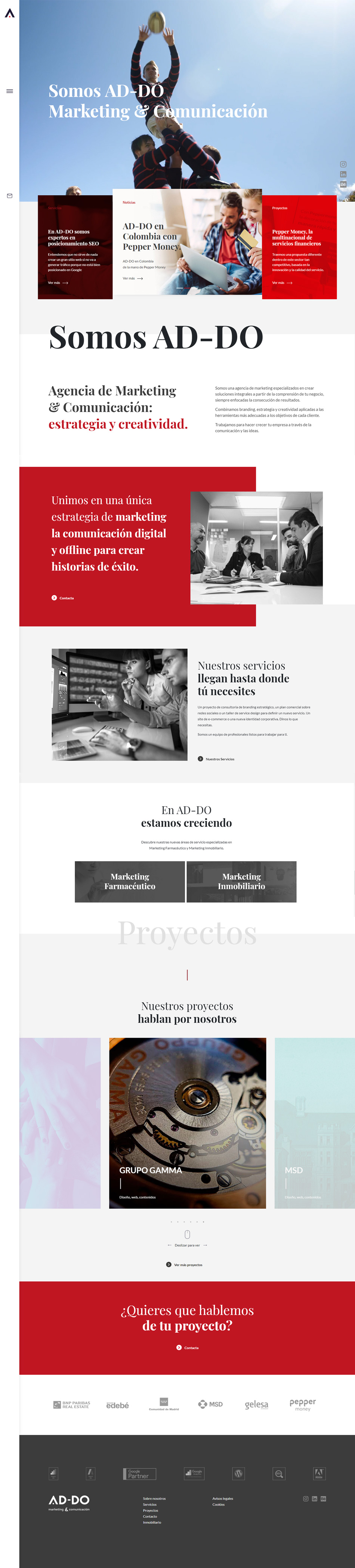 - Maquetado responsive de la página principal y secundarias con sus animaciones correspondientes, links a páginas externas...